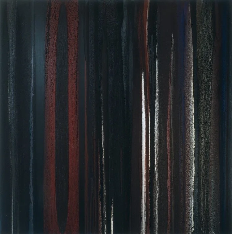 The color of Vishnu Schist—deep, extraordinary, almost incandescent in certain light—became my primary vocabulary. I sought to translate that color into a monumental painting: a surface that breathes with mineral hums and geological memory, a landscape that refuses a single gaze and invites complexity. The painting expands beyond itself, attempting to render the canyon’s vertical time into a field where dark planes meet subtle glints of garnet and mica, where mineral textures ripple like water and hold their own memory of pressure and heat. It is not a literal map of rock; it is a communion with the feeling of being present inside a 2-billion-year-old story, at once intimate and overwhelming.